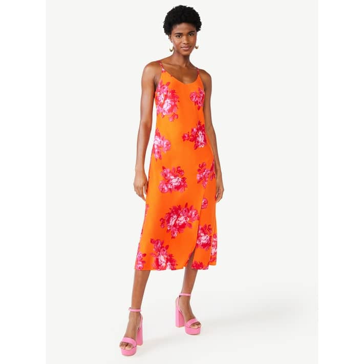 Scoop Women S Satin Midi Slip Dress With Side Slit Sizes Xs Xxl Walmart Com