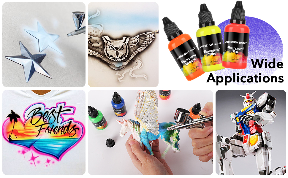 Amazon Com Airbrush Paint Pinjat 16 Colors Airbrush Paint Set 30ml 1oz Opaque Water Based Acrylic Airbrush Paint Kit Including Fluorescent Colors Air Brush Painting Set For Beginners Artists And Hobbyist Arts